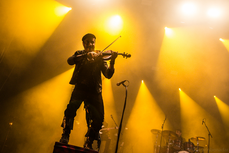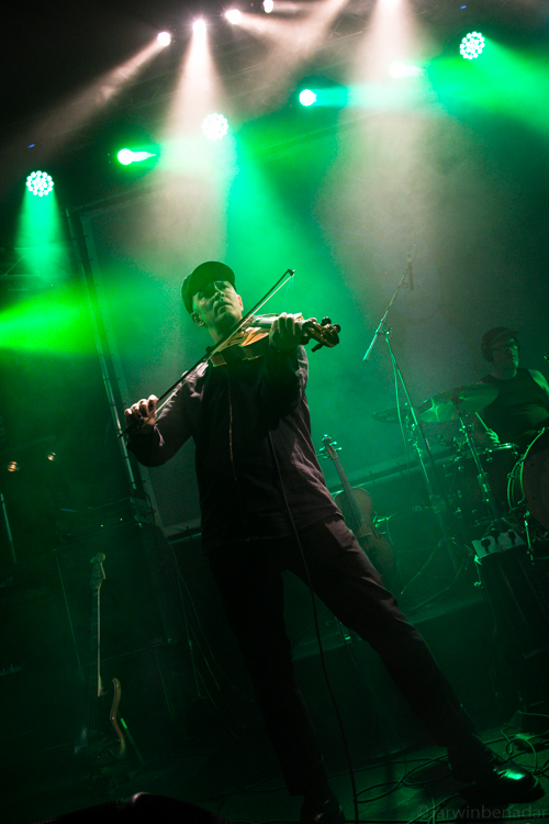 Musikalisch, wie gesagt, ein Kontrast zu Trobar de Morte. Harte elektronische Klänge paaren sich mit eher “untraditionellen” Instrumenten wie Bass und Schlagzeug, während Emma mit ihrer prägnanten Stimme einen Ruhepol ausstrahlt. Und genauso wirkt es auch auf der Bühne, wenn um sie herum Gotte und Stefan an Gitarre und Geige nicht ruhig stehen bleiben können, Emma von ihrem Mikrofon aber nicht zurückweicht. Auch nicht, wenn sie bei den instrumentellen Parts ihre eigene Geige in die Hand nimmt.